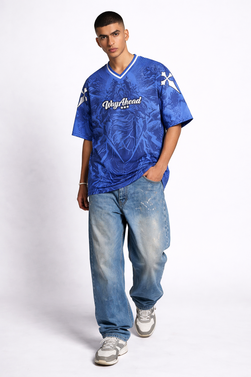 Designed with an oversized , relaxed fit, the ThunderLord Jersey delivers the perfect oversized streetwear silhouette. The glossy athletic fabric gives it that authentic game-day feel, making it just as strong for the streets as it is for styling with cargos, denim, or sweatpants.