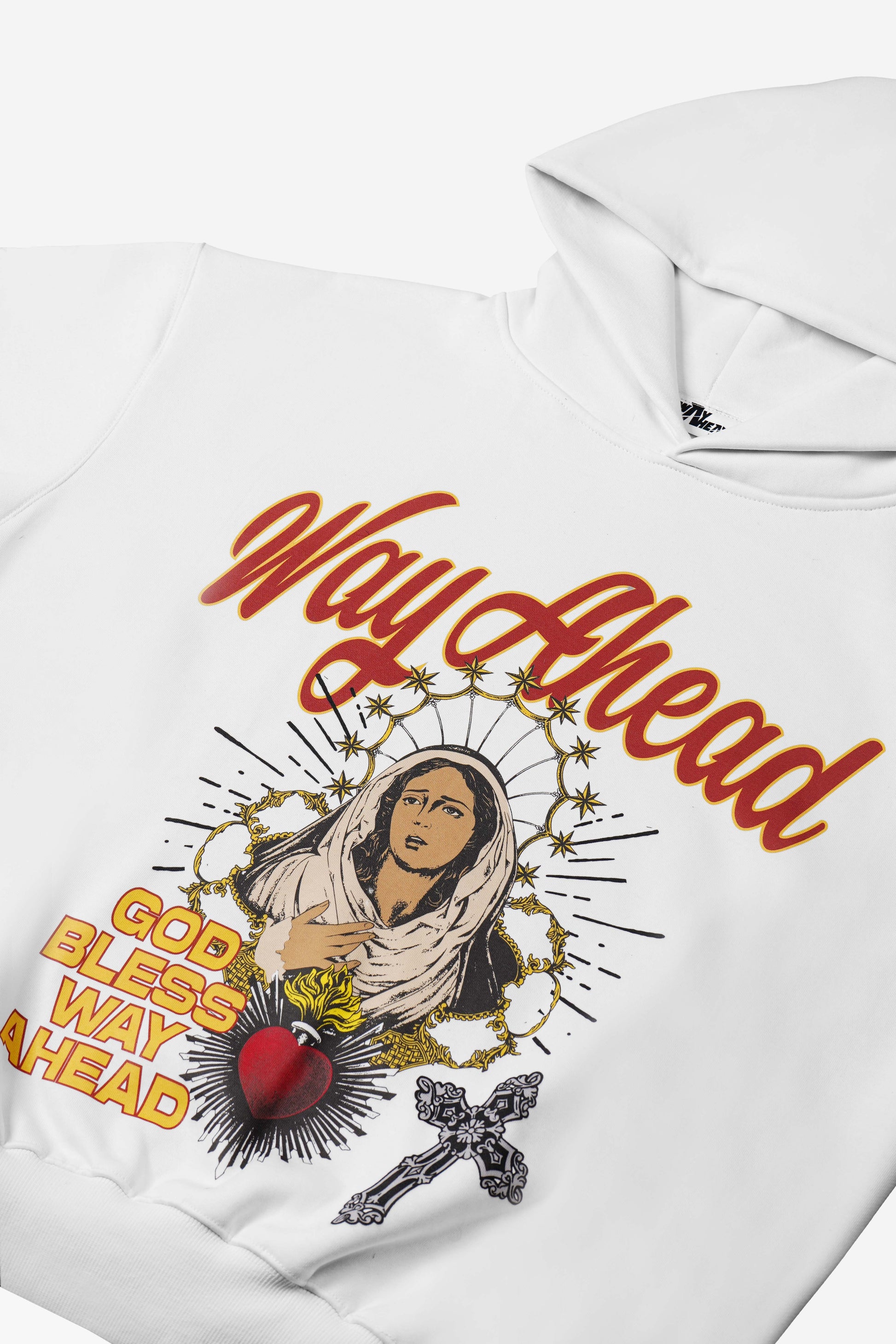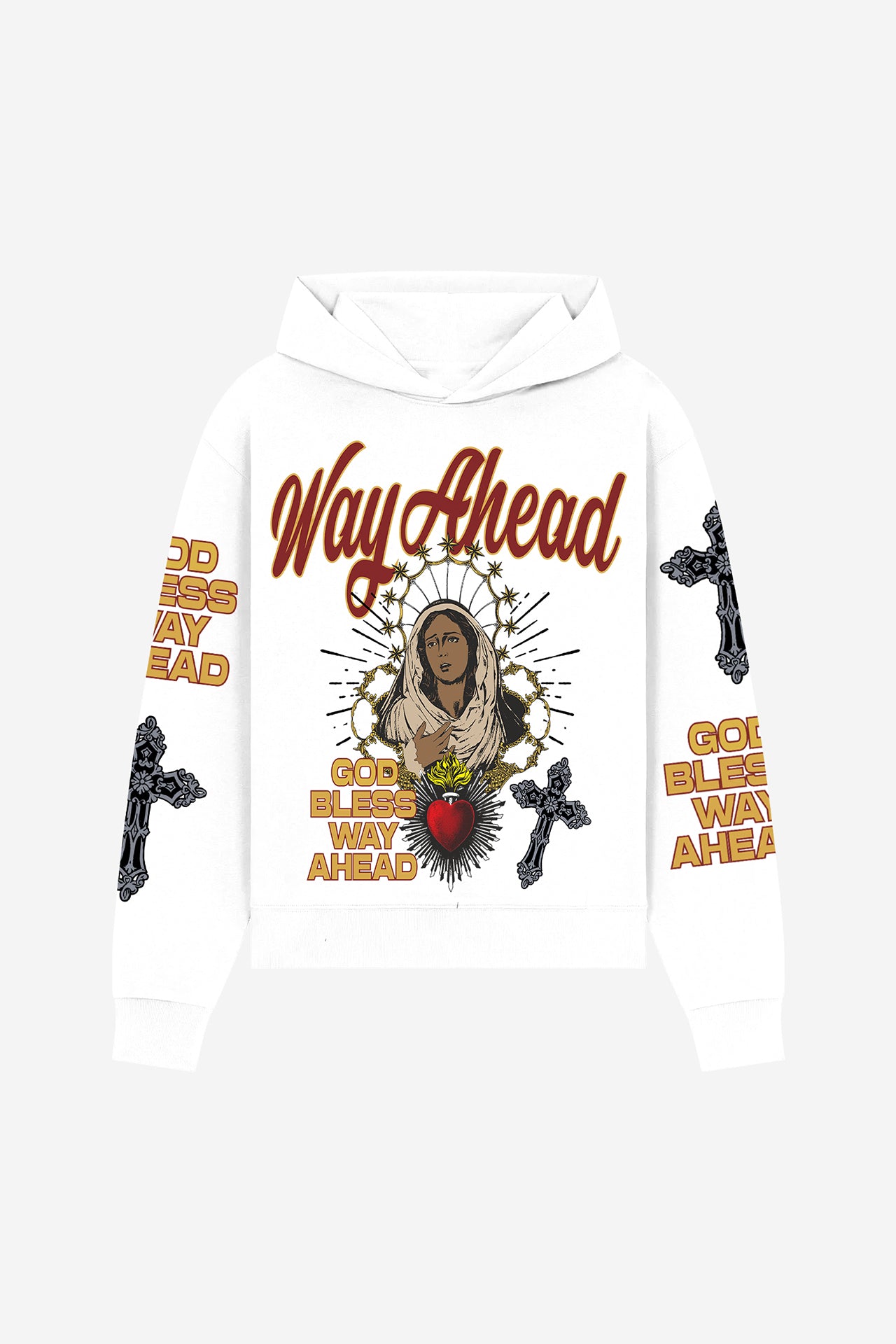 Introducing the 'Holy' Hoodie from WayAhead – a sacred fusion of streetwear and spirituality. This meticulously crafted hoodie pays homage to timeless devotion with a discreet yet powerful portrayal of Mother Mary.